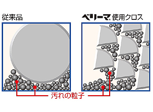 使用原糸は、超極細繊維ベリーマ(※)。しなやかな柔らかさで被払浄物をキズつけにくく、きれいに拭き上げます。