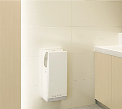 ![]() ジェットタオルスリム 手に付いた水滴をぬぐい取るように吹き飛ばすエアータオルです。 |